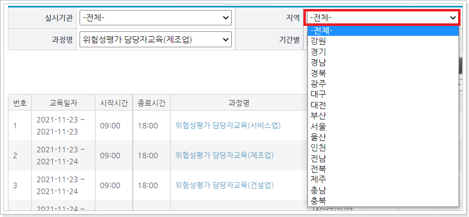 3. 먼저 수강을 받을 교육 과정을 선택합니다.