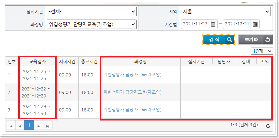 5. 교육일자와 일정, 실시기관을 확인하고 과정명을 클릭합니다.