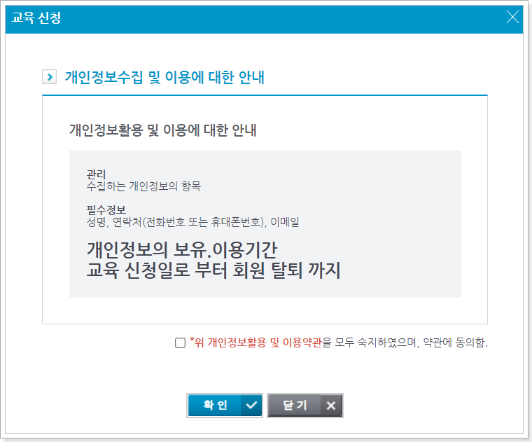 7. '개인정보활용 및 이용에 대한 동의'를 클릭합니다.