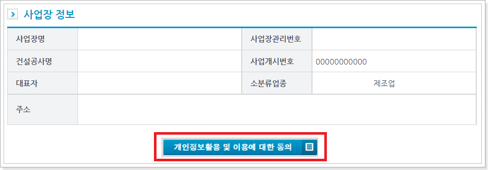 6. 사업장 정보(사업장관리번호, 사업개시번호)를 입력하고 조회를 클릭합니다.