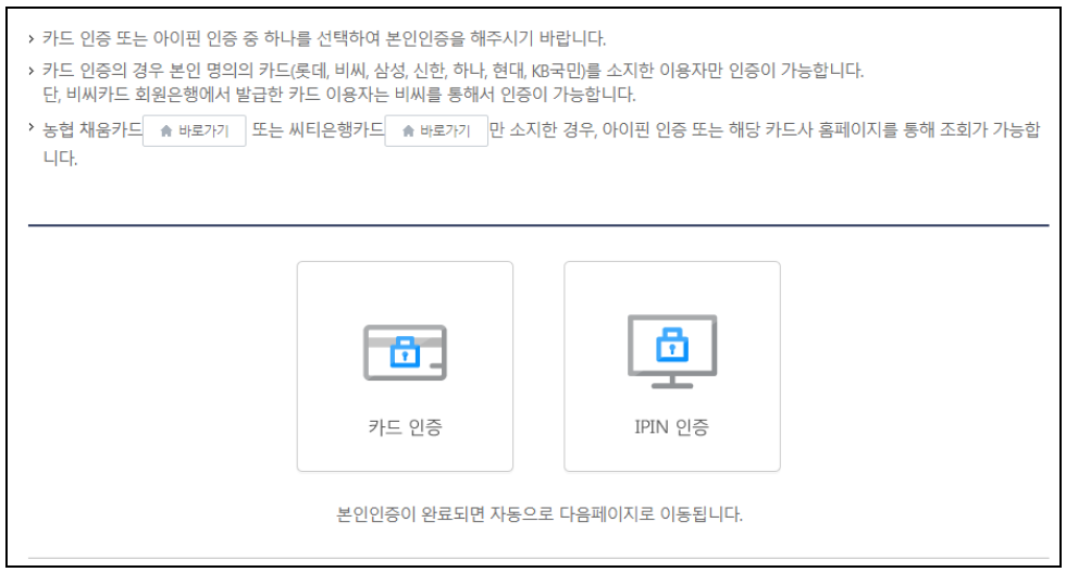 그리고 카드 인증을 해주시면 되겠습니다. IPIN으로 인증가능하신 분들은 아이핀으로 인증하셔도 됩니다.
