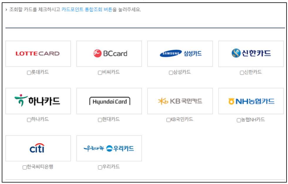 조회하고 싶으신 카드의 체크박스에 모두 체크를 해주세요. 저는 모든 카드를 조회하겠습니다.